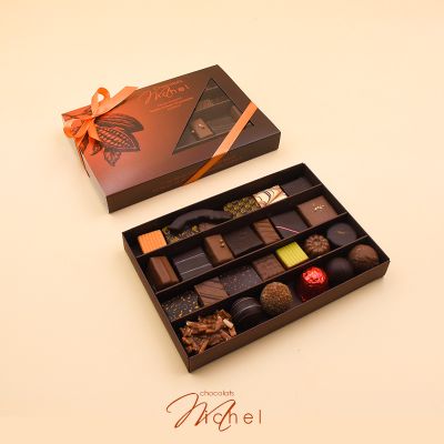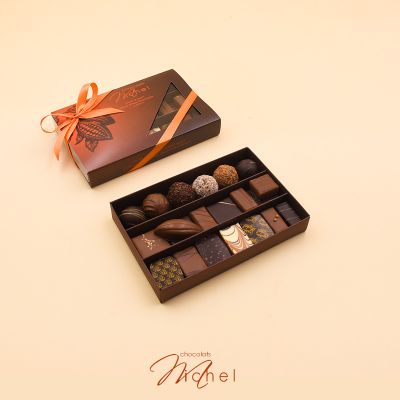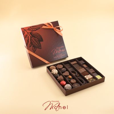 Coffrets de dégustation d'assortiments de ganaches et de pralinés réalisés par nos maitres chocolatiers.