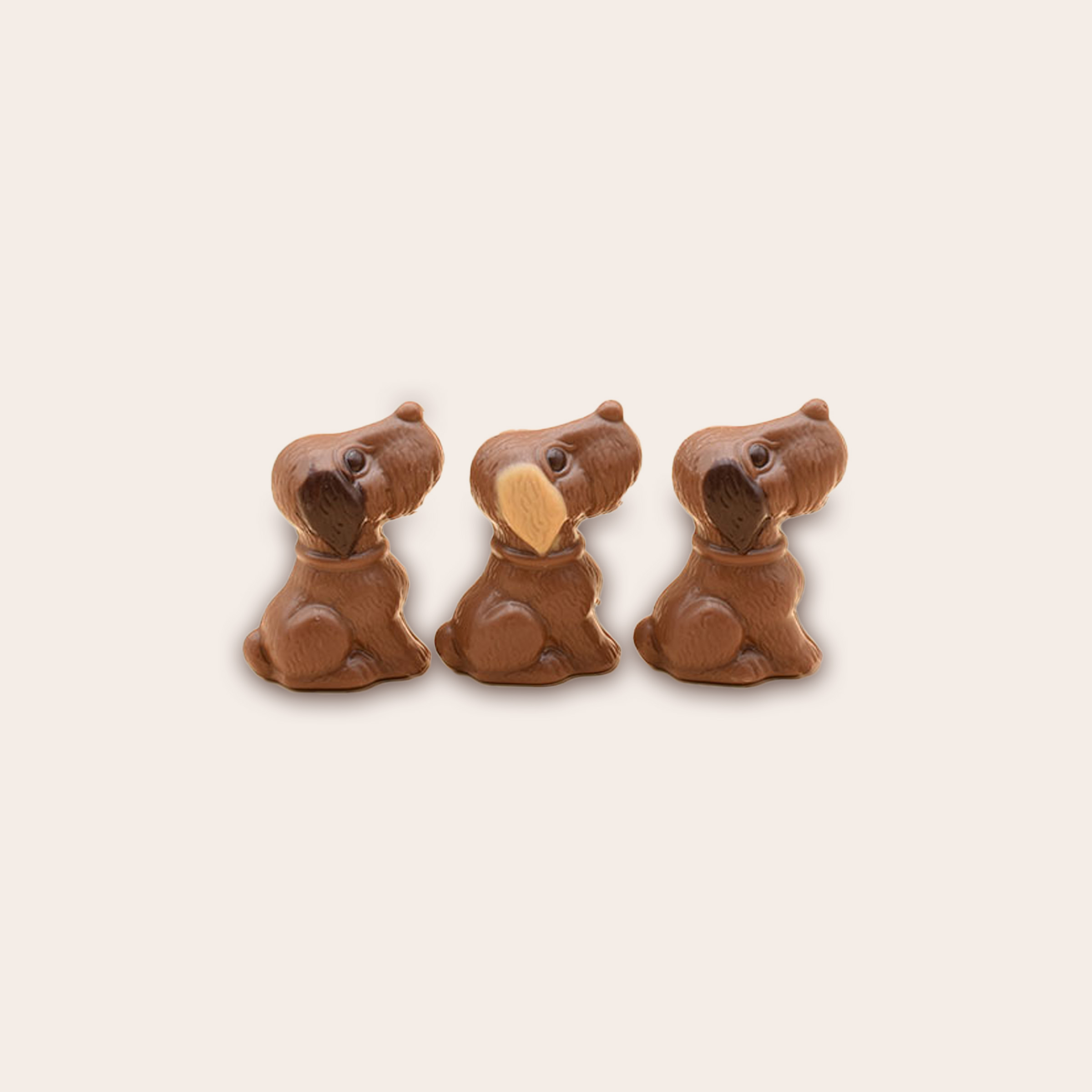 Accueil / Moulages / 3 petits chiens chocolat lait