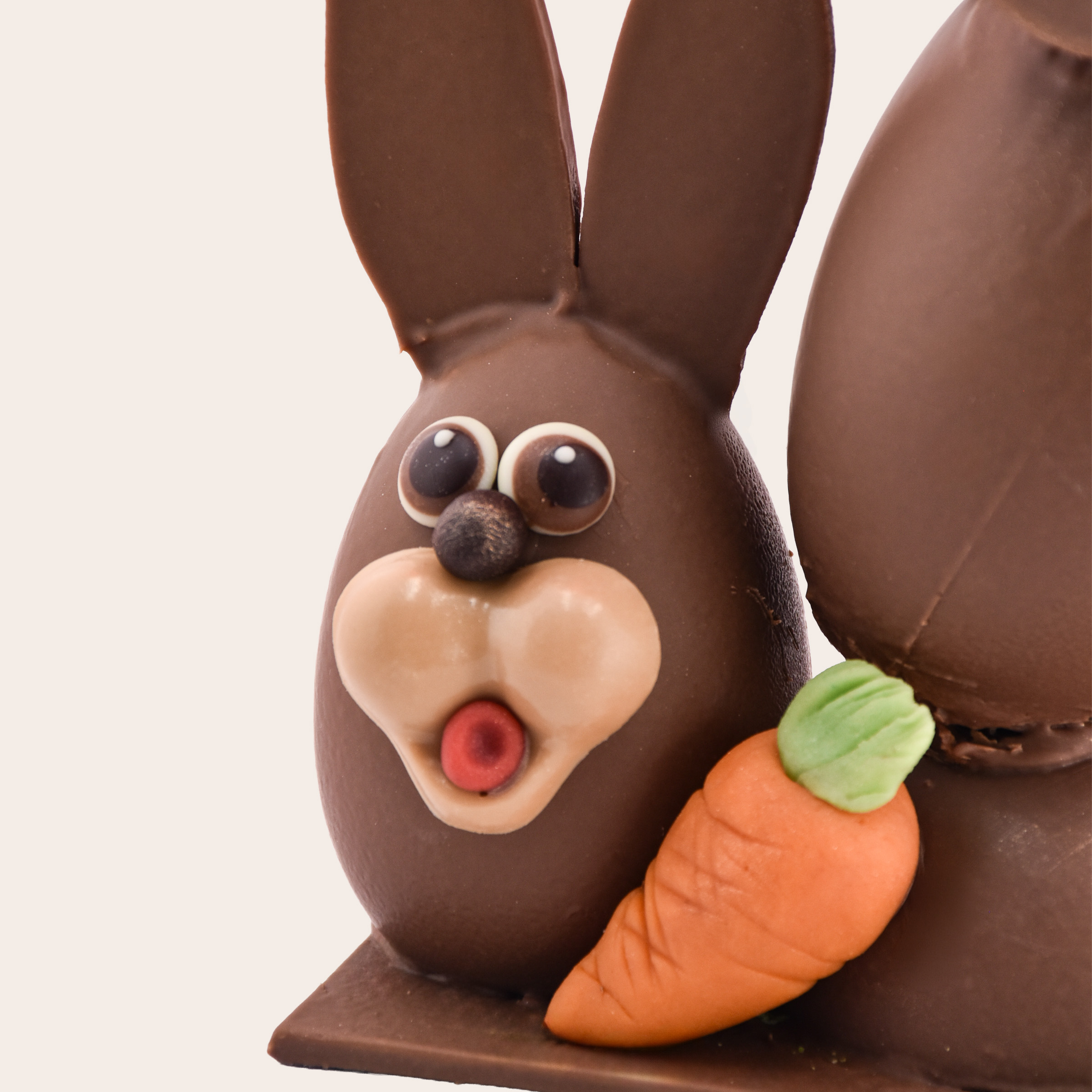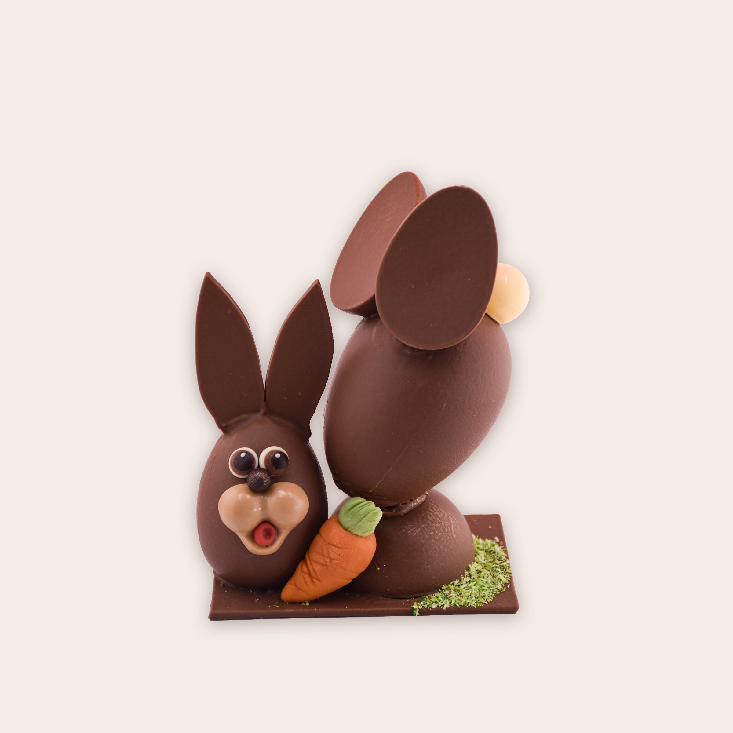 Une création unique entièrement réalisée en chocolat lait 33.60%, façonnée avec passion dans nos ateliers.