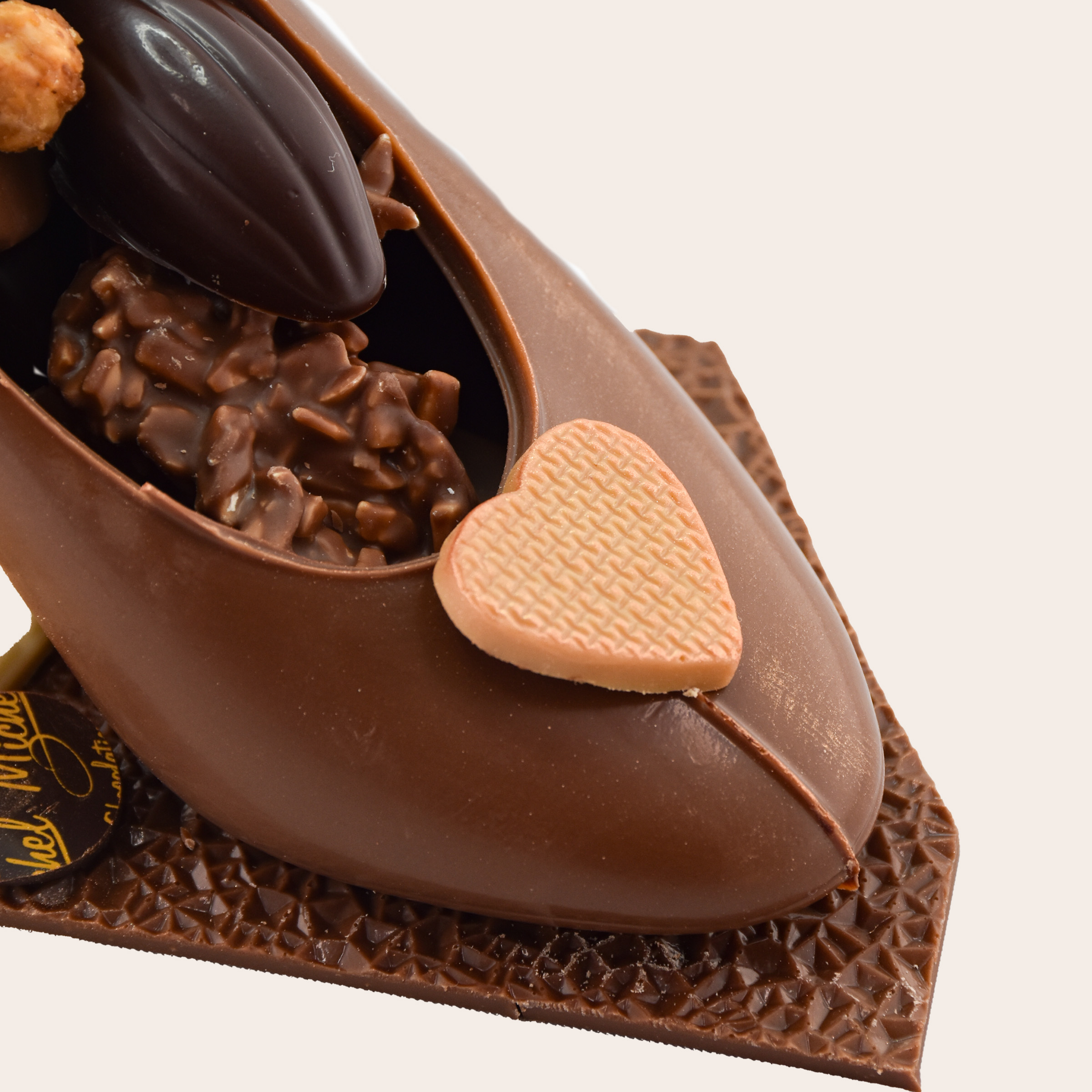Une création unique entièrement réalisée en chocolat, façonnée avec soin dans notre atelier.