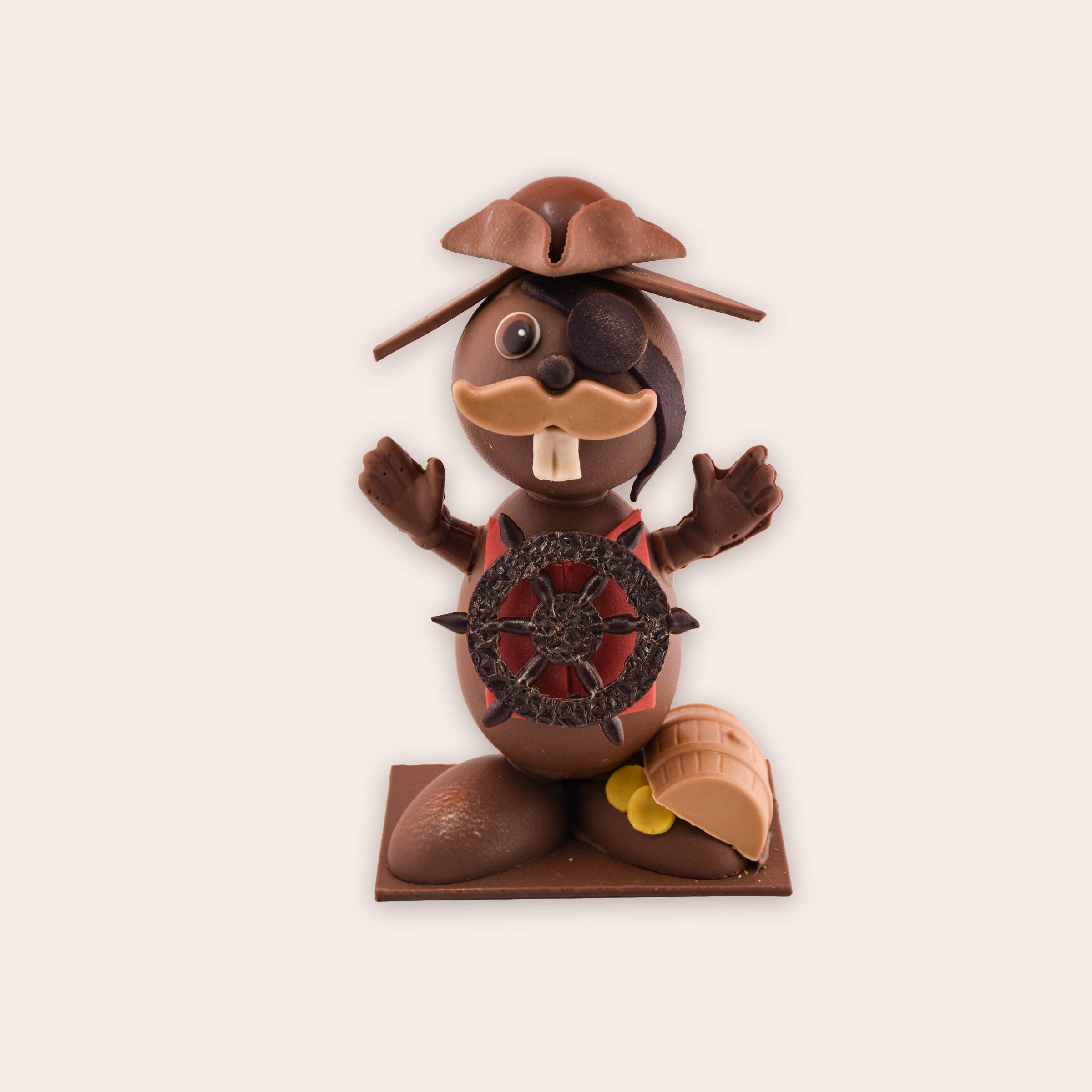 Une création unique entièrement réalisée en chocolat lait 33.60%, façonnée avec passion dans nos ateliers.