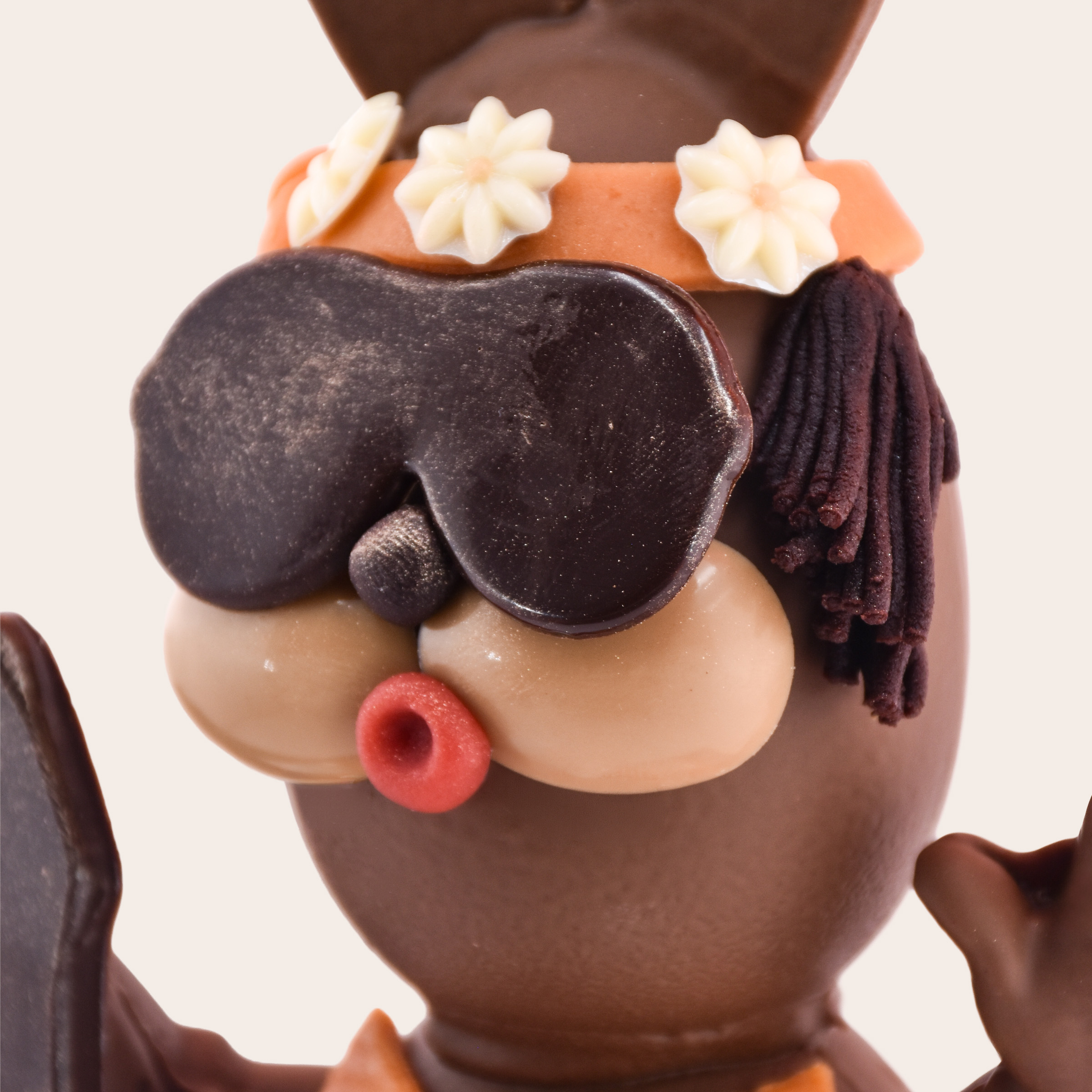 Une création unique entièrement réalisée en chocolat lait 33.60%, façonnée avec passion dans nos ateliers.
