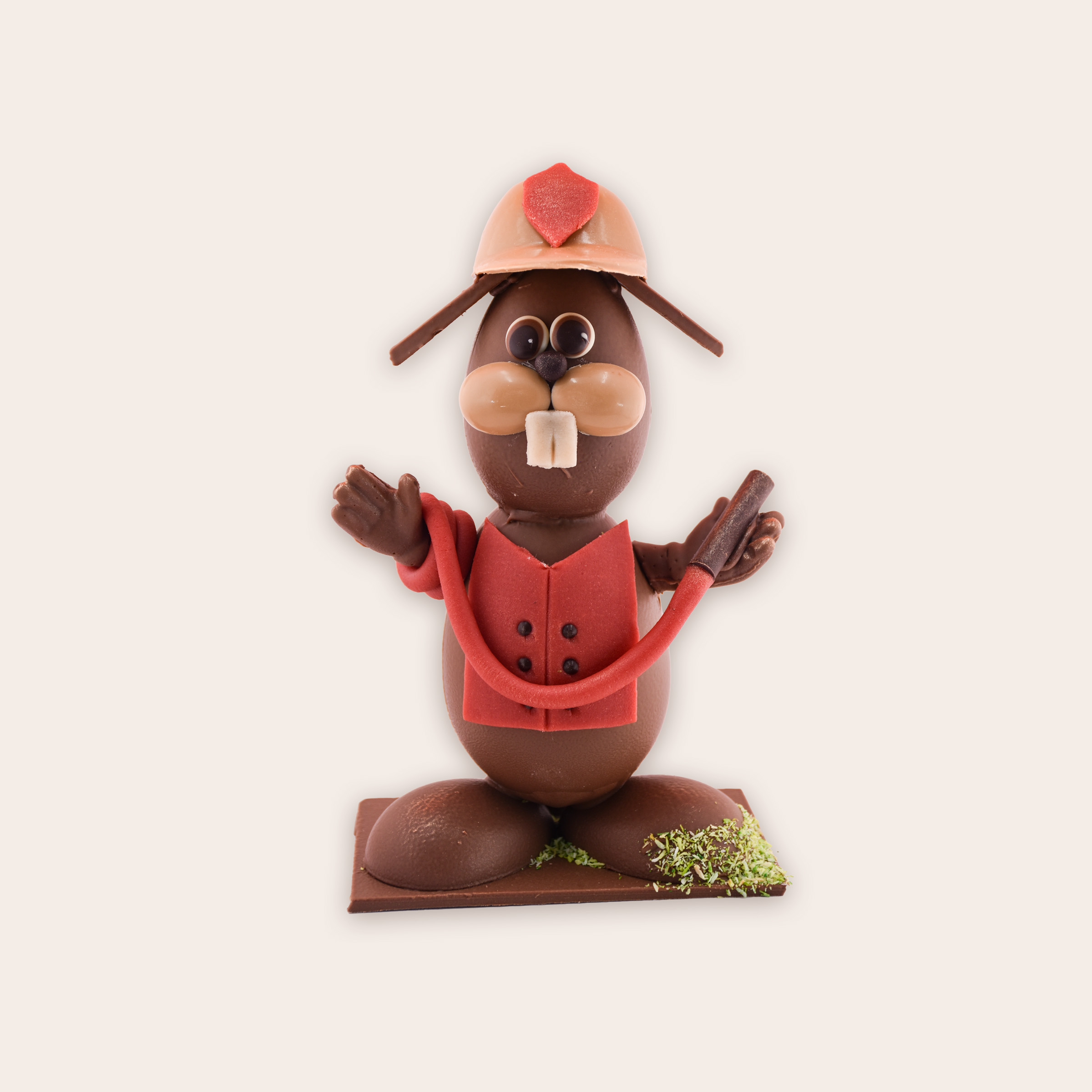 Une création unique entièrement réalisée en chocolat lait 33.60%, façonnée avec passion dans nos ateliers.
