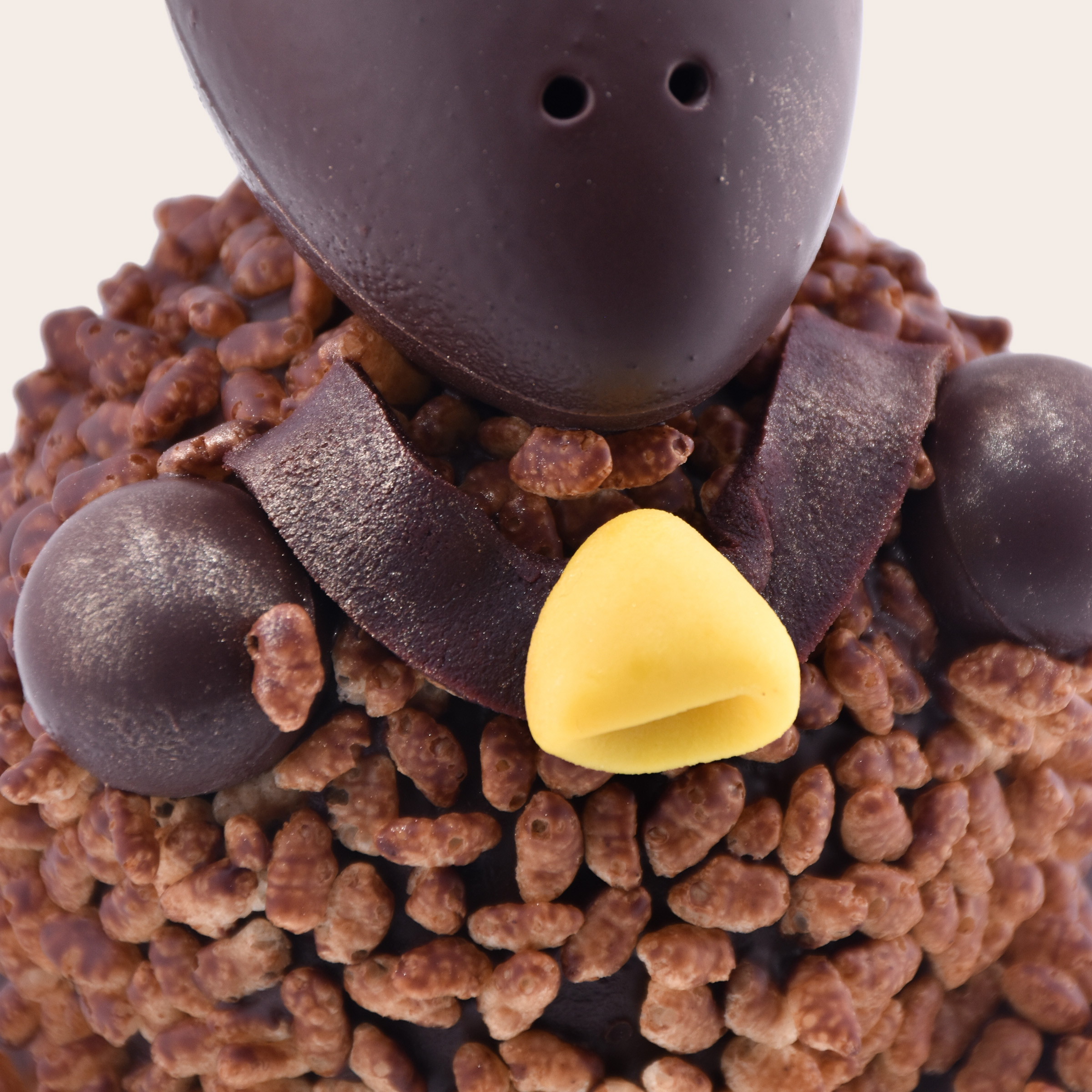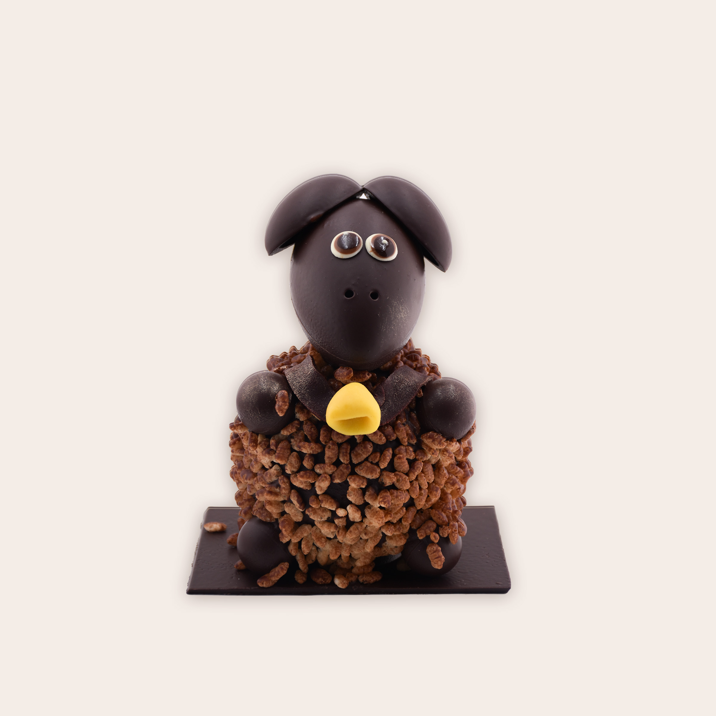 Une création unique entièrement réalisée en chocolat noir 60,10%, façonnée avec passion dans nos ateliers.