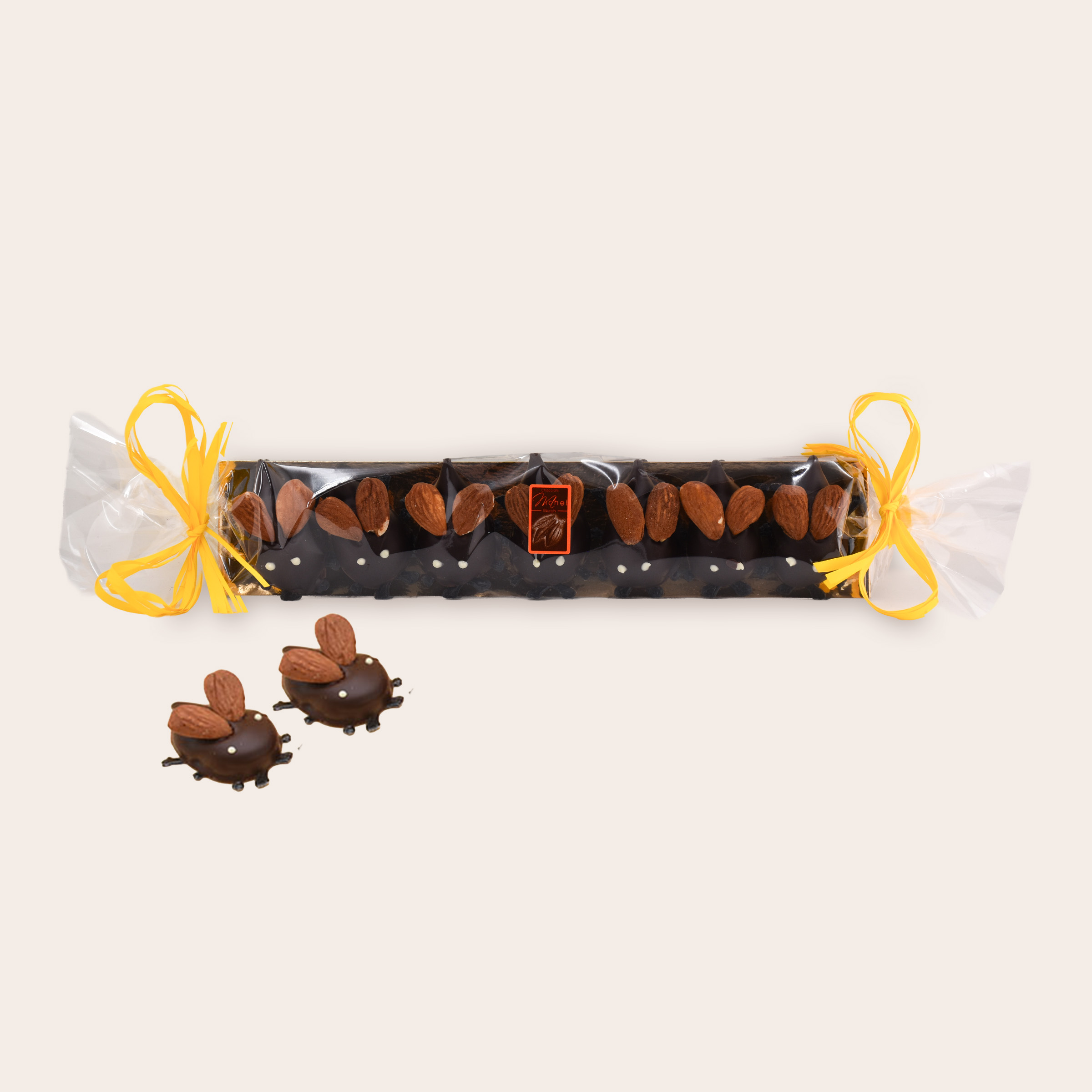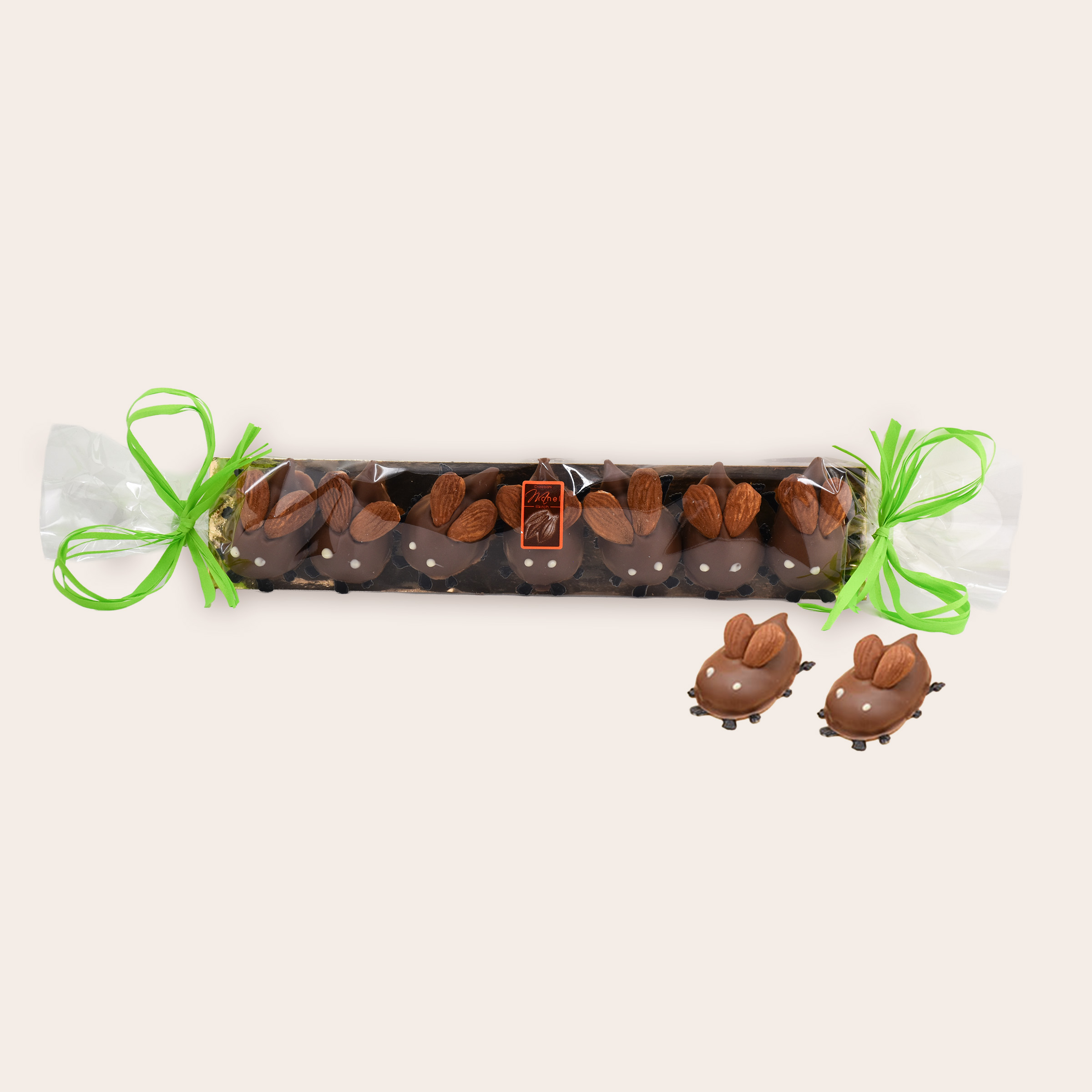 Sucre, pâte et beurre de cacao, poudre de lait entier, amande, émulsifiant lécithine de soja, vanille naturelle, noisette Peut contenir des traces d'autres fruits à coques.Conservation :
