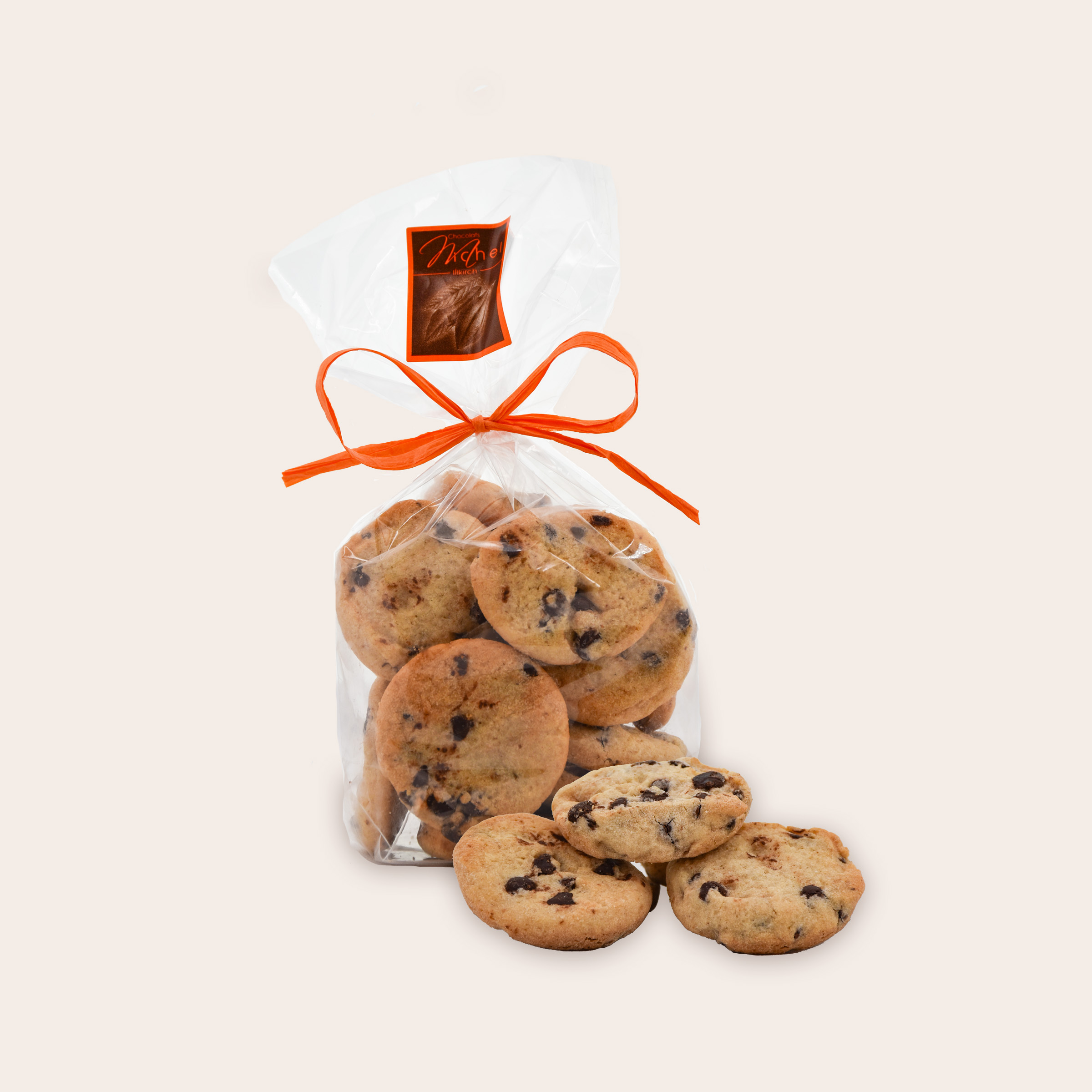 Farine (blé), cassonade, beurre, pépites de chocolat noir 50% (pâte et beurre de cacao, sucre, émulsifiant : lécithine de soja), noisettes, sucre, œufs, fleur de sel de Guérande, poudre à lever. Peut contenir des traces d’arachide, fruits à coques, gluten, lait.Conservation :