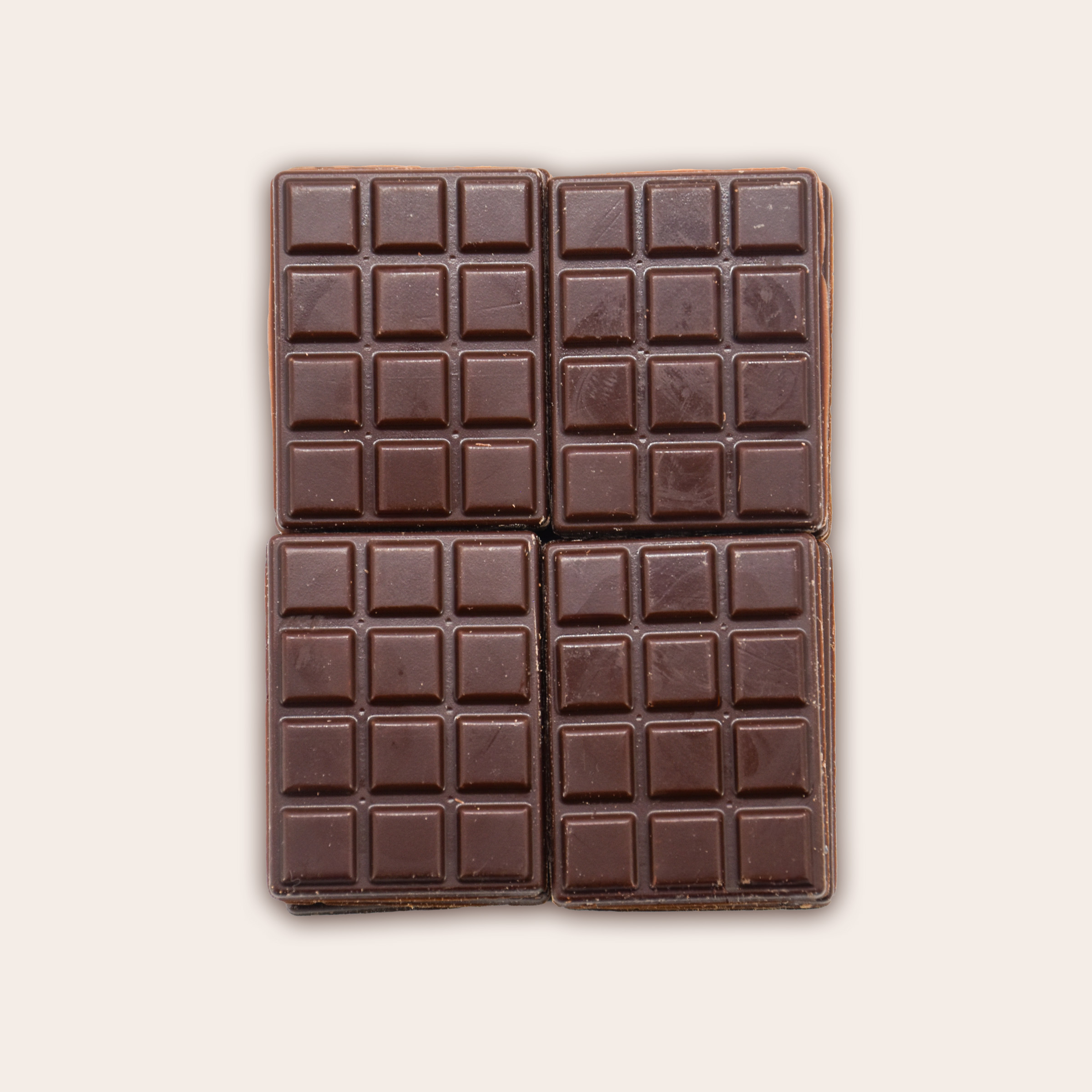 12 mini tablettes au chocolat au noir sans sucre, la force authentique du cacao à l’état pur.